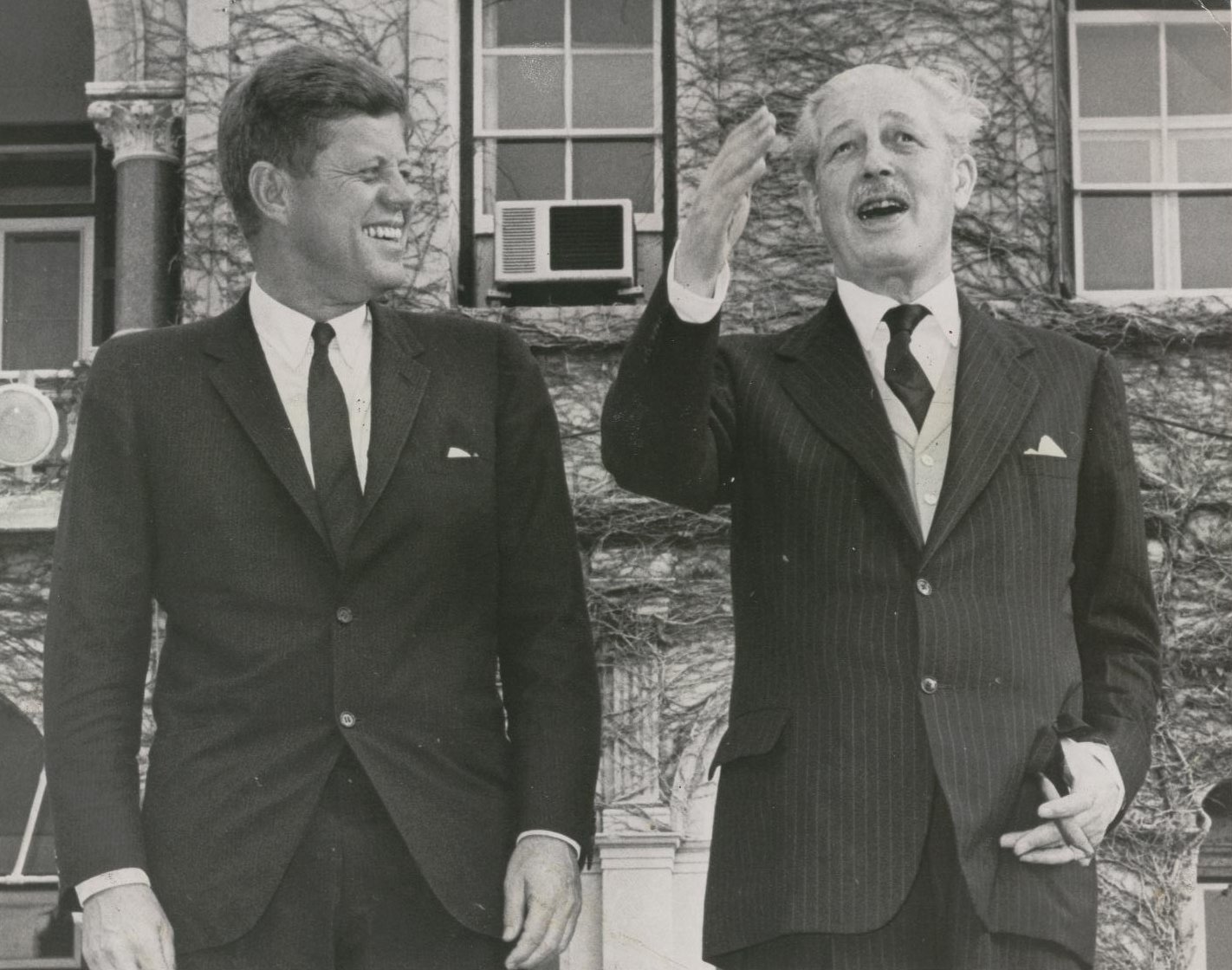 President John F Kennedy takes a walk with Prime Minister Harold Macmillan outside the Government House in Hamilton, Bermuda, December 1961. The pair met in Bermuda to discuss, among other things, nuclear defence. Bermuda was a popular meeting place, as it allowed the convenience of a ‘state visit’ on UK territory without the long trip to Europe [CPA Photos].